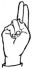 На ћирилици написано АЛЕКСАНДРА МИЛОШИЧЕВИЋ састоји се из 21 слова [?]. Исписано ћириличном једноручном азбуком за глувонеме: